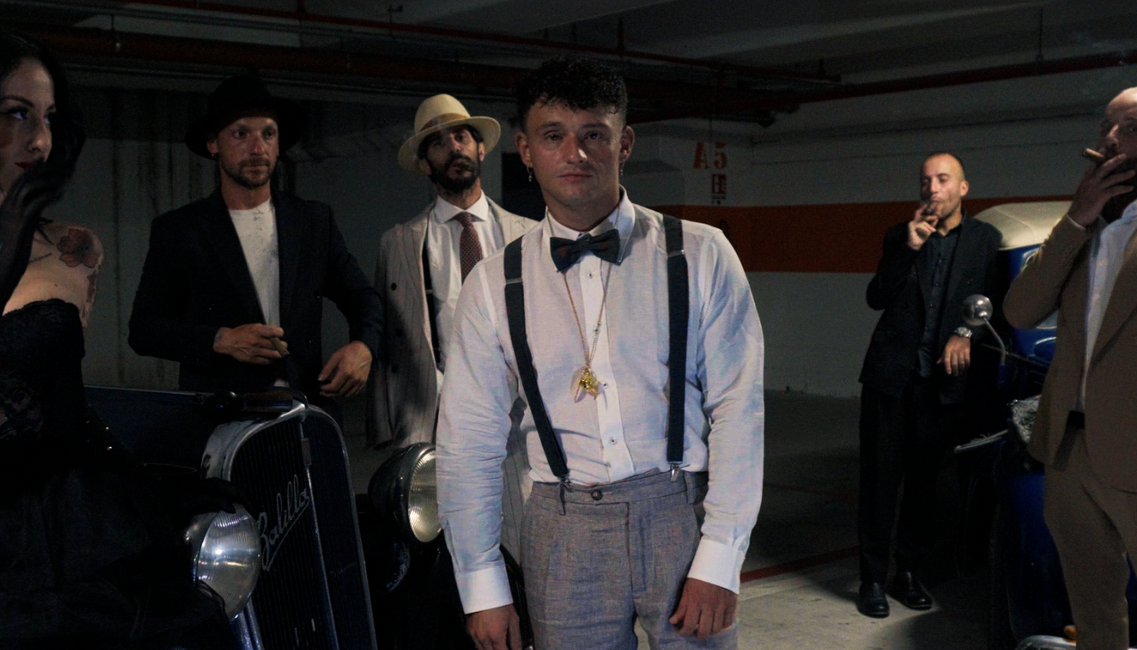 “Mezzogiorno di fuoco” è accompagnato da un videoclip ambientato negli anni ’50 tra auto d’epoca e abiti eleganti. Un escamotage per rafforzare l’immaginario da film. Exu Nathan interpreta un personaggio raffinato ma emotivamente instabile, incastrato in una di quelle che oggi si chiamano relazioni tossiche: fatte di fuoco e scintille, tra attrazione e disillusione.
