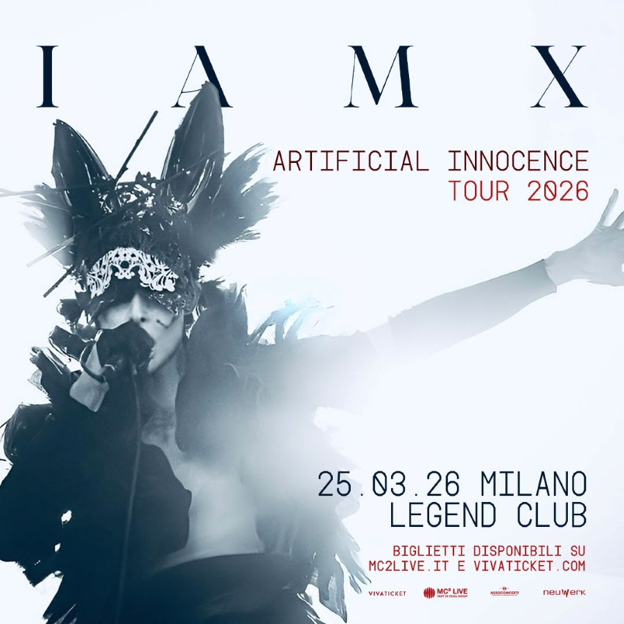 IAMX annuncia oggi il nuovo “Artificial Innocence Tour 2026”, serie di date che vedranno il progetto alternative dance/electro-rock di Chris Corner tornare anche in Italia a sette anni di distanza dall’ultimo concerto svoltosi nel nostro Paese.