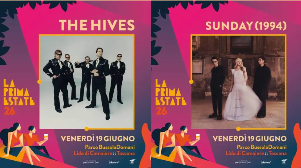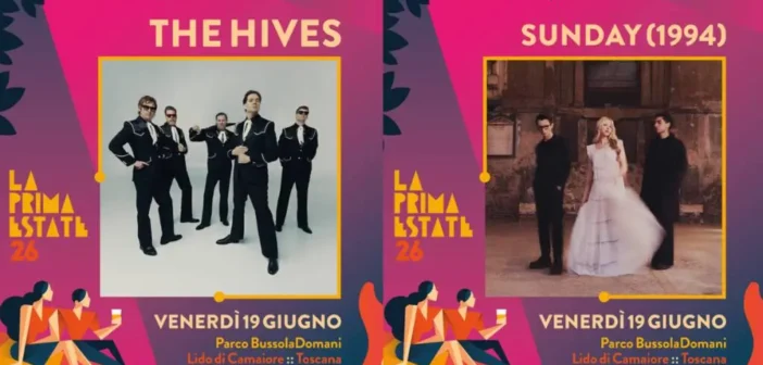 Nuove conferme per La Prima Estate, splendido festival che si svolge al Parco BussolaDomani di Lido di Camaiore (Lucca): nella serata di apertura, in cui l’headliner sarà Jack White, si esibiranno prima di lui The Hives e Sunday (1994).